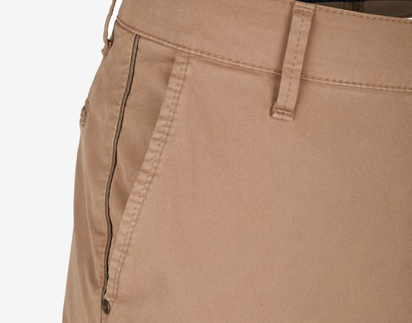 Bequeme Chino in Slim Fit mit elastischem Comfortbund und Hemdstopper. Die Münztasche bringt einen Hauch Sportivität in den Look. Gefertigt aus einem leichten Baumwoll-High Stretch. Die cleane Optik und der softe Griff machen die Hose zu etwas Besonderem. Gewicht: 270 g/lfm Das Modell bietet eine normale Leibhöhe und wegen der deutlich schmaleren Fußweite einen extra schlanken Beinverlauf.