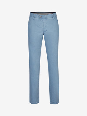 Comfortabele broek met platte voorkant, elastische comfort tailleband en overhemdstopper. Plus de veiligheidszak met rits in de rechterachterzak. Gemaakt van zeer elastisch katoen met een ruitafwerking voor een geraffineerde look en een zacht gevoel. Gewicht: 320 g/rm Dit model heeft een normale taille en een rechte pijp.