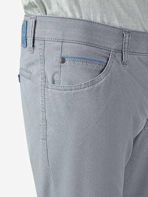 Bequeme Swing-Pocket mit elastischem Comfortbund und Hemdstopper. Die Münztasche mit Kontrast bringt einen Hauch Sportivität in den Look. Gefertigt aus einer hochelastischen High Stretch-Baumwolle in schöner Printstruktur mit Coolmax® EcoMade Klimaregulierung. Die Coolmax EcoMade-Faser wird zu 100% aus recycelten Ressourcen hergestellt, um die Umwelt zu schonen.Gewicht: 280 g/lfm Das Modell verfügt über eine normale Leibhöhe und ein schlankes Bein bei schmaler Fußweite.